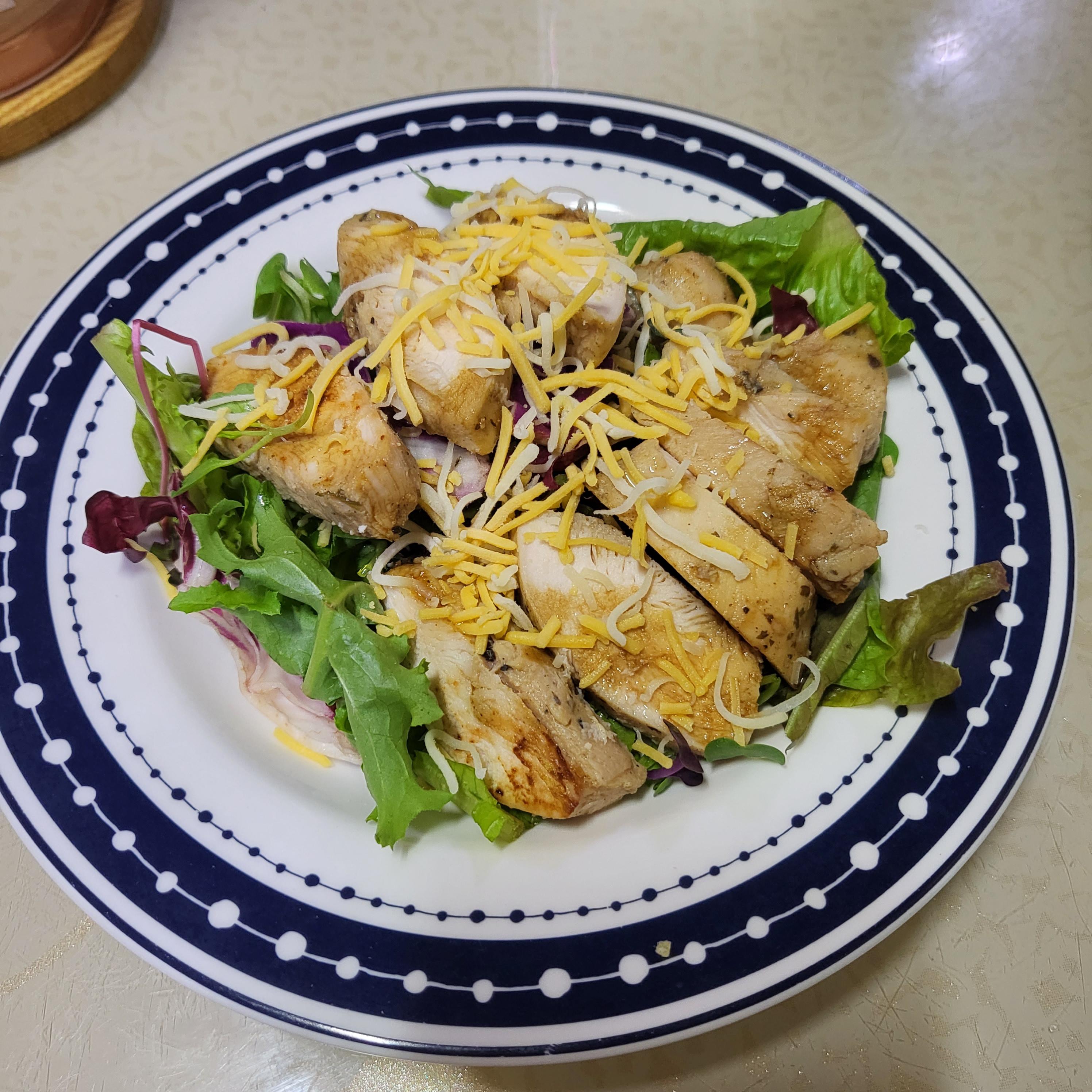 이른 저녁으로 닭가슴살 샐러드 한 접시.
