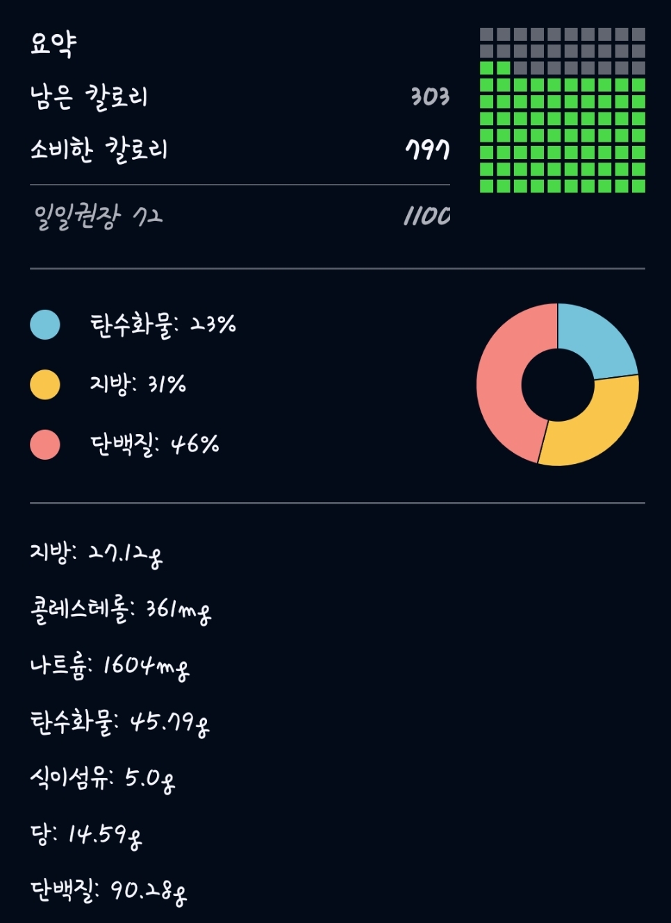 그래도 오늘 나름 탄단지 비율 괜찮아서 만족스러움.