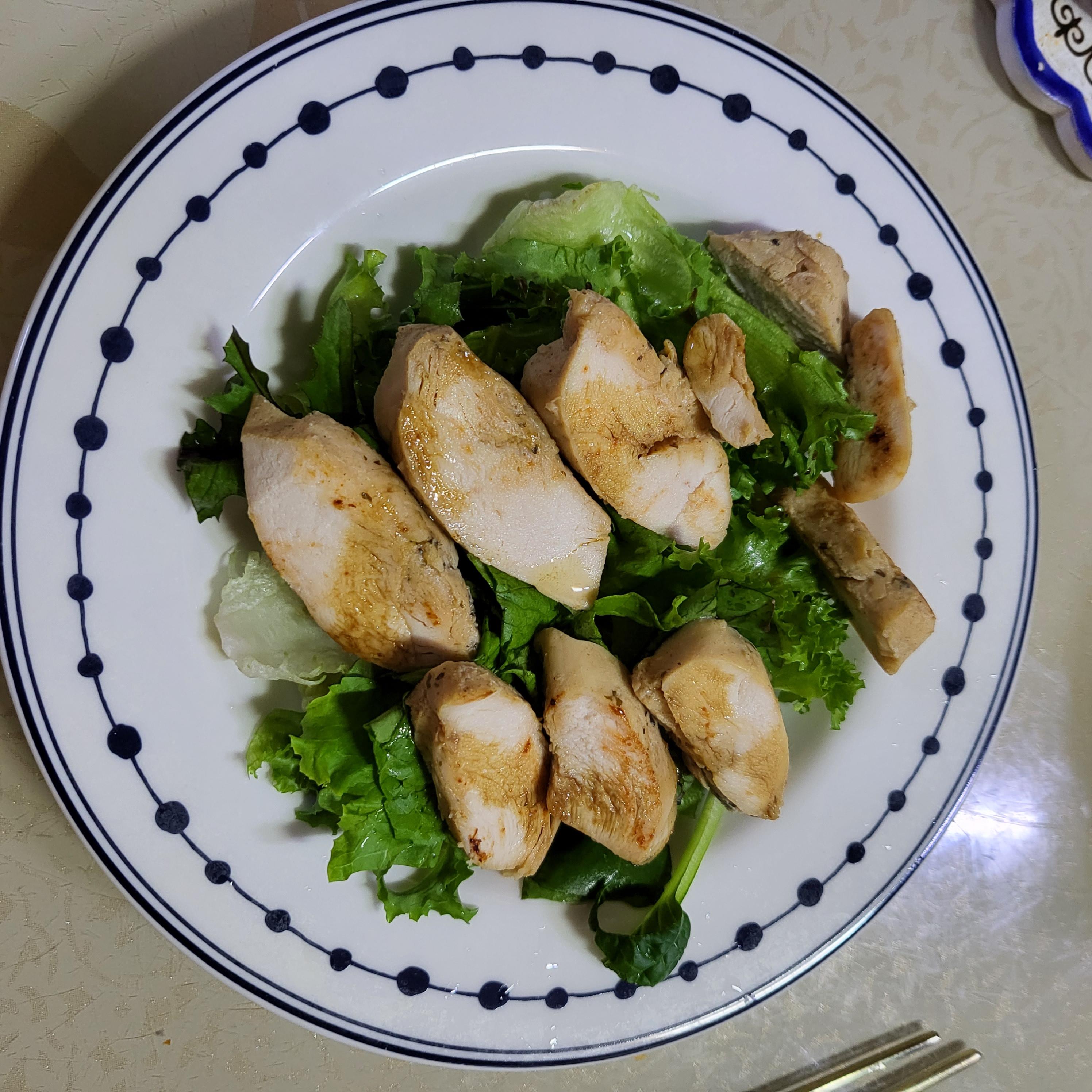 저녁과 밤 사이, 근력운동하고 먹은 닭가슴살 샐러드...