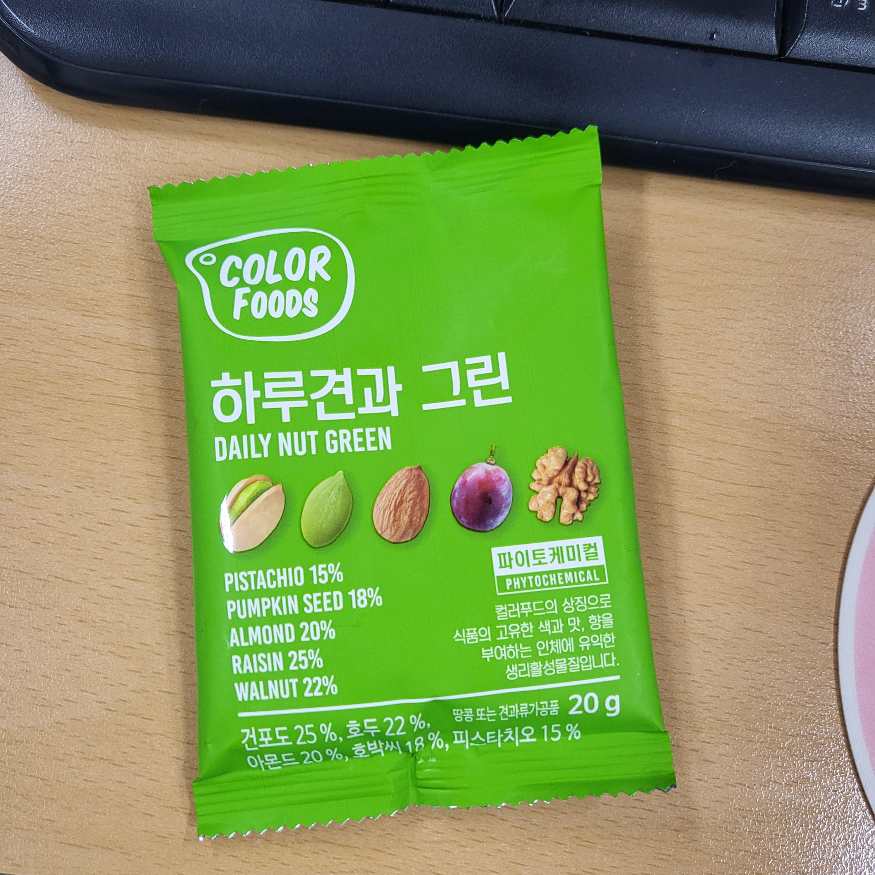 - 하루견과: 128kcal (탄4.8g, 단 3.5g, 지10.5g)