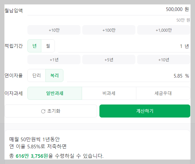 따라서 같은 상품이라도 복리 상품에 가입하는게 훨씬 좋아요.