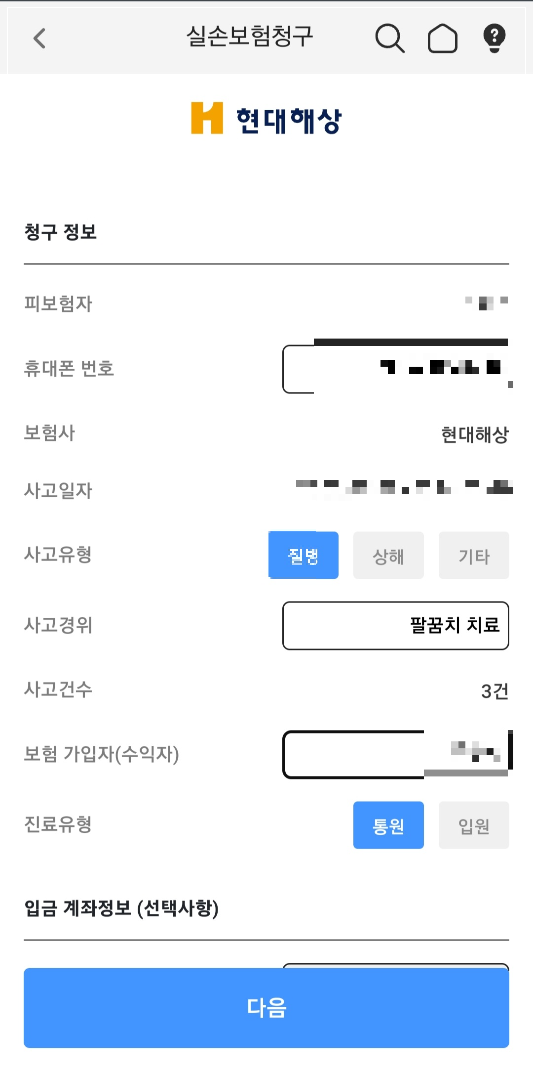 최근 엘보우 진단받고 병원에서 치료 후 보험금 서류를 달라고 했더니