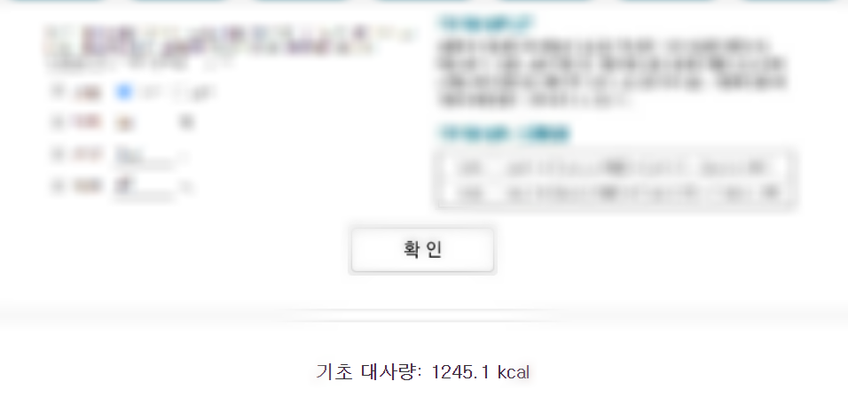 위 링크에서 나이/키/체중을 입력하면 기초대사량이 바로 나온다.