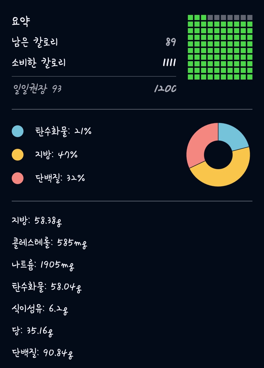 - 하루견과: 150kcal (탄 6g, 단 5g, 지 12g)