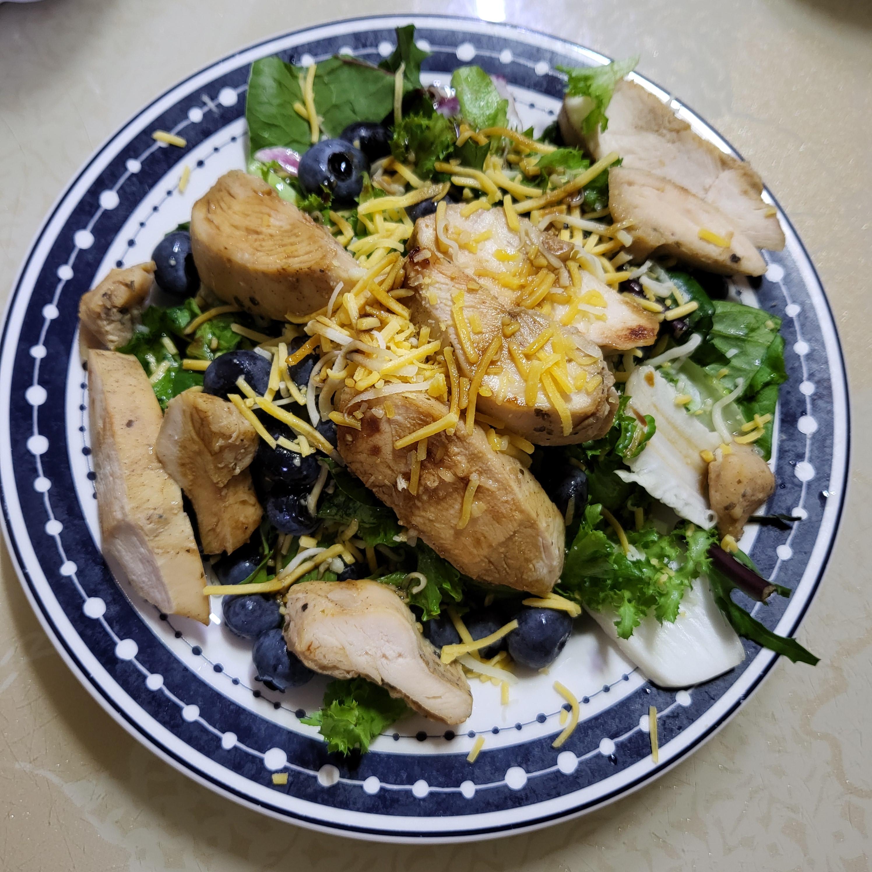 집에오자마자 배고파서 먹은 닭가슴살 블루베리 샐러드-