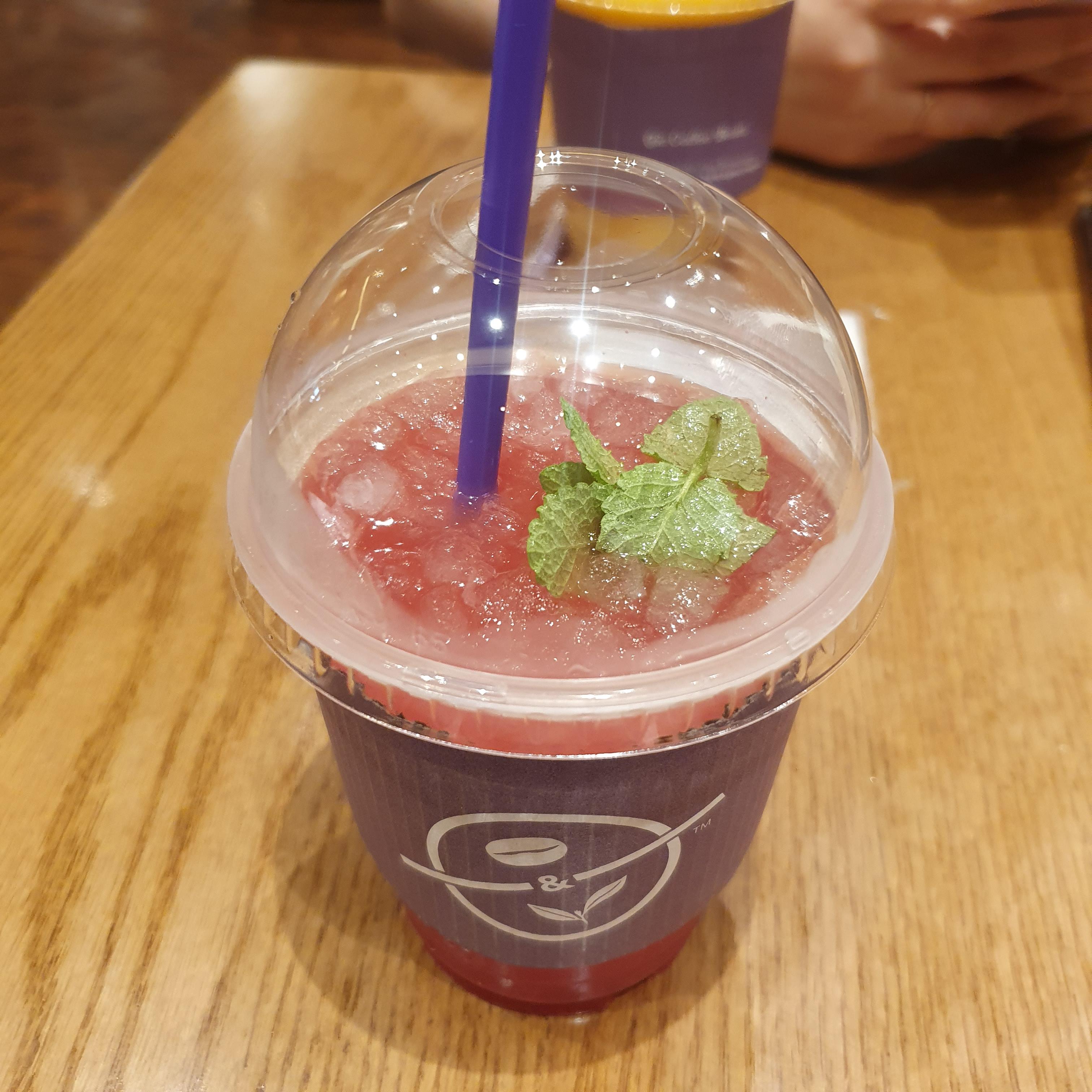 식 후, 커비핀에서 수박 주스 한 잔 마심.